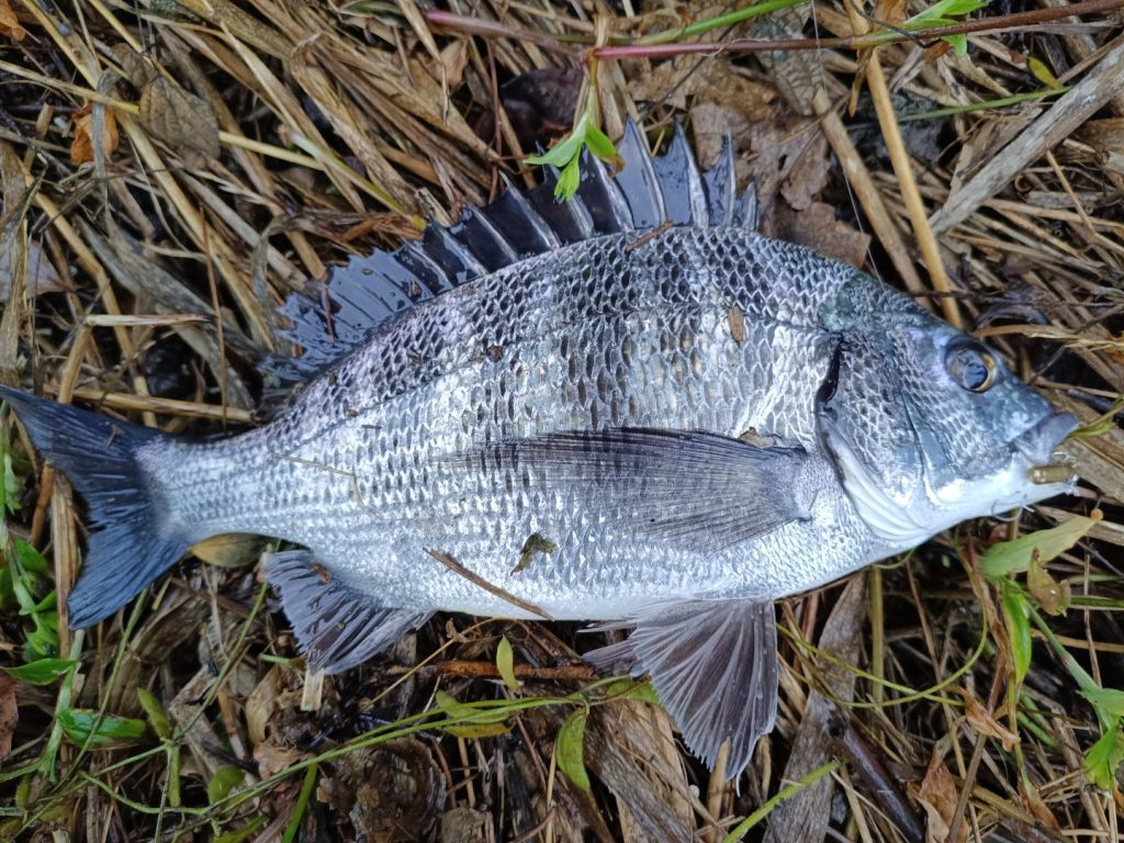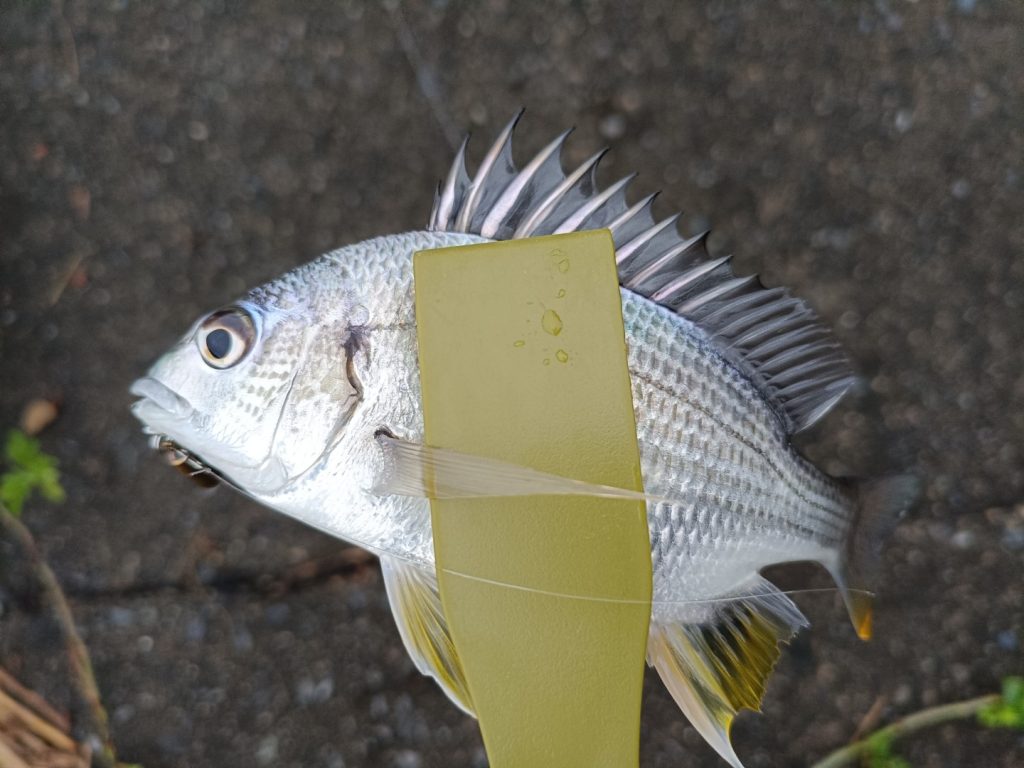 結構引いたので、フナとかコイかなと思ったんですが、クロダイだったのでうれしかったです。