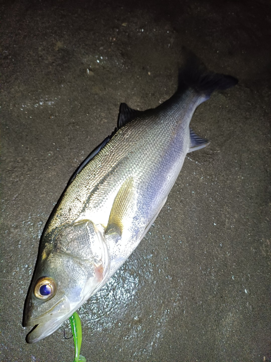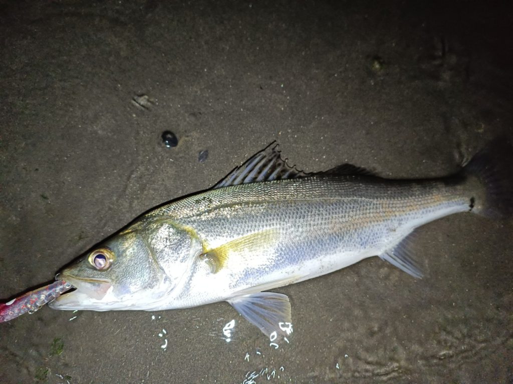 本日は幸いにもシラスウナギ漁の灯りがありません。前回は自分の立ち位置より海側で明かりをつけてタモで掬っている人がいたので、ちょっとプレッシャーがあって魚も警戒していたのではないかと思っていました。